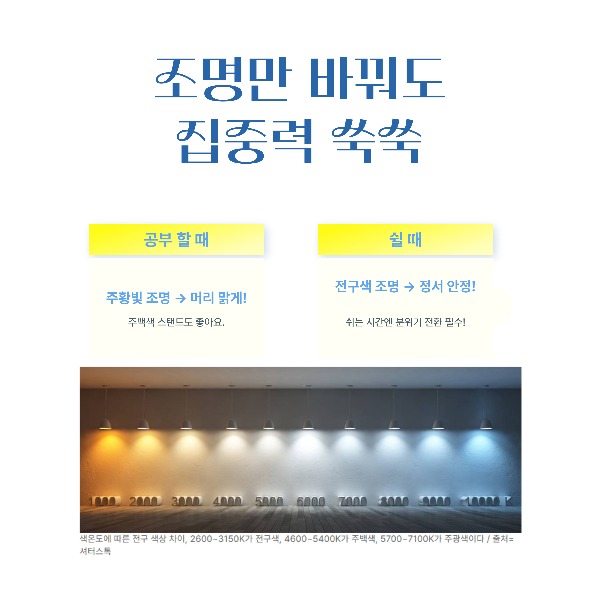 공부할 때는 주백색 조명 (밝고 선명한 빛)